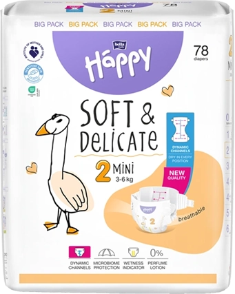 Scutecele Bella Baby Happy Soft & Delicate Mini oferă confort și siguranță bebelușului. Tehnologia nouă a canalelor asigură distribuția rapidă a lichidului și o senzație și mai bună de uscat pentru copilul tău, în orice poziție și la orice oră din zi. Calitatea și siguranța scutecelor au fost confirmate de certificatul Dermatest și de avizul pozitiv al Institutului Mamei și Copilului.