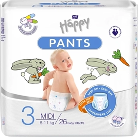Bella Baby Happy Pants Midi oferă, înainte de toate, confort și siguranță copilului tău care învaţă să fie independent. Sistemul Quick & Easy este modalitatea de a schimba foarte uşor scutecul, pentru ca cel mic să se întoarcă repede la joacă. Siguranța și calitatea produselor noastre au fost confirmate de certificatul Dermatest și de avizul pozitiv al Institutului Mamei și Copilului.